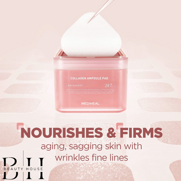 MEDIHEAL Collagen Ampoule Pad – Square Cotton Facial Toner Pads Collagen & Ceramide